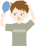 AGA(エージーエー)とは、「男性型脱毛症」の意味です。 成人男性によくみられる髪が薄くなる状態のことで、思春期以降に額の生え際や頭頂部の髪が、どちらか一方、または双方から薄くなっていきます。